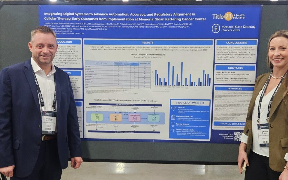 Cell and gene therapies hold immense promise, but paper-based workflows hinder scalability, inflate costs, disrupt supply chains, and most importantly affect your time-to-patient delivery. Title21’s Cell and Gene Therapy (CGT) Orchestration Platform streamlines your documentation and quality processes so you can focus on delivering more life-saving treatments not more paperwork.