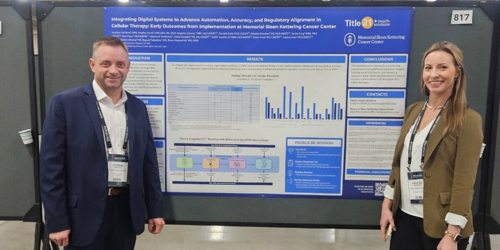 Phoenix, AZ, February 5, 2026 — Title21 Health Solutions, a leading provider of enterprise quality management systems and cell and gene therapy orchestration platforms, will present a poster today at the 2026 Tandem Meetings highlighting efficiency gains achieved by integrating its new digital cell therapy orchestration platform and advanced analytics at Memorial Sloan Kettering Cancer Center.